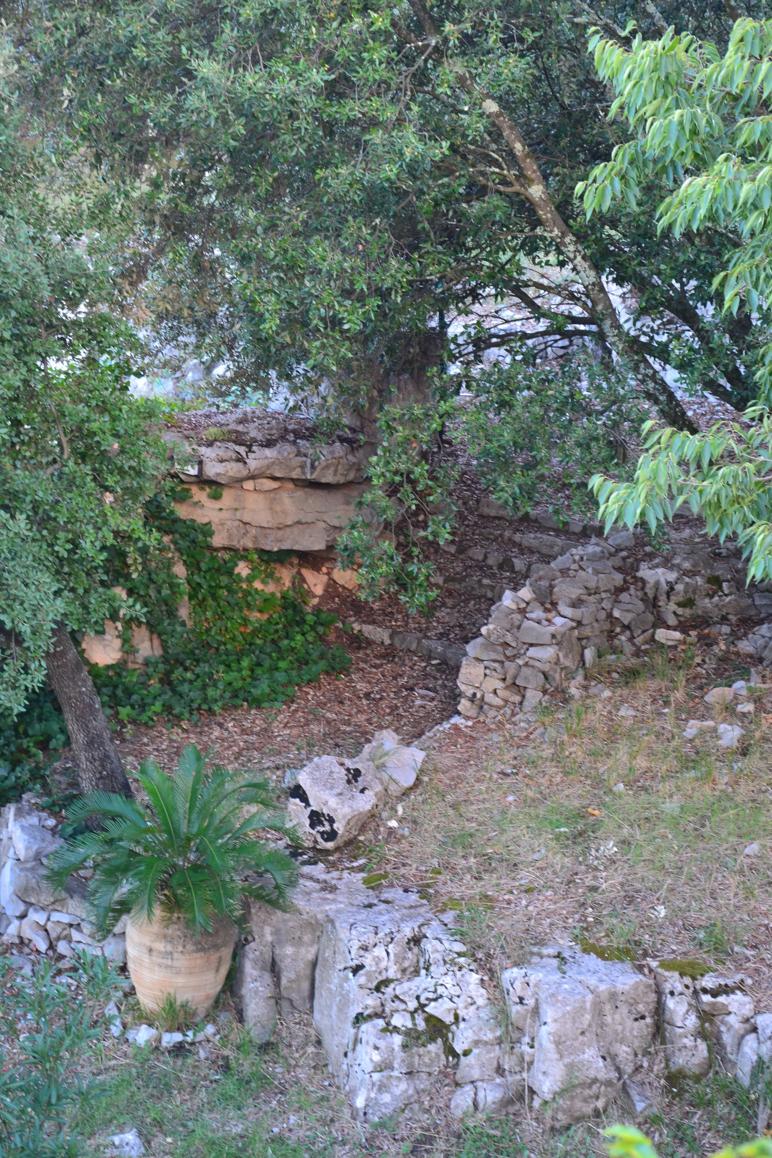 Grande propriété sur plus d’un hectare, avec prairies en terrasses, murets de pierres sèches, grands arbres procurant de nombreux espaces ombragés